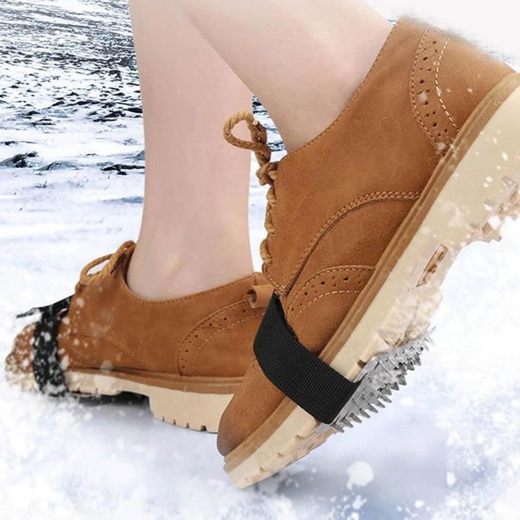 商品特徴:雪道や凍結した道路でも滑らない簡易アイゼンです。裏面のスパイクで雪や氷をしっかりととらえ、歩行時の転倒を防止します。また斜面での農作業や、落ち葉や泥のある道でも役立ちます。面ファスナー付きのベルトで簡単に着脱できます。ビジネスシューズ、運動靴、スニーカーなどに取り付けできます。※ハイヒール、サンダルには取り付けできません。コンパクトで軽量なので持ち運びの際も負担になりません。冬場の通勤や通学、散歩、降雪地への旅行、出張でご利用いただけます。