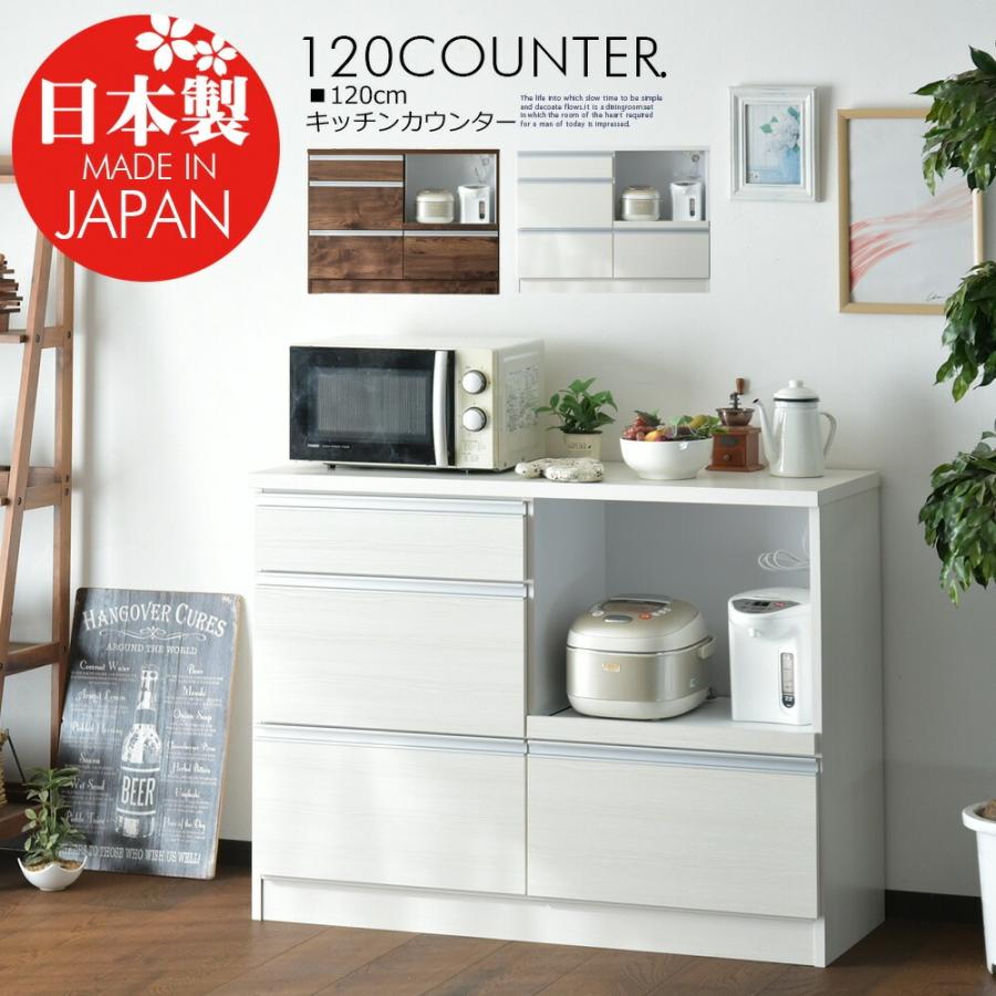 国産 キッチンカウンター 120cm カウンター 120 キッチン収納 収納 完成品 日本製 レンジ台 食器棚 ロータイプ 引き出し コンセント付き おしゃれ シンプル