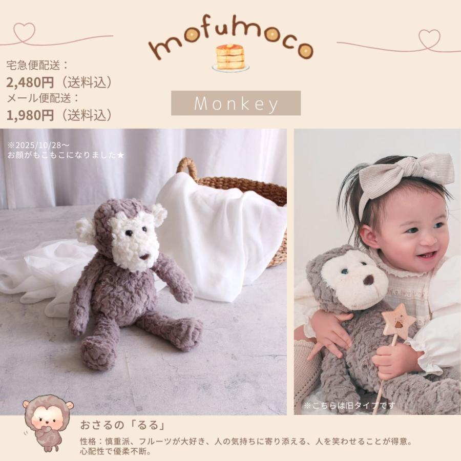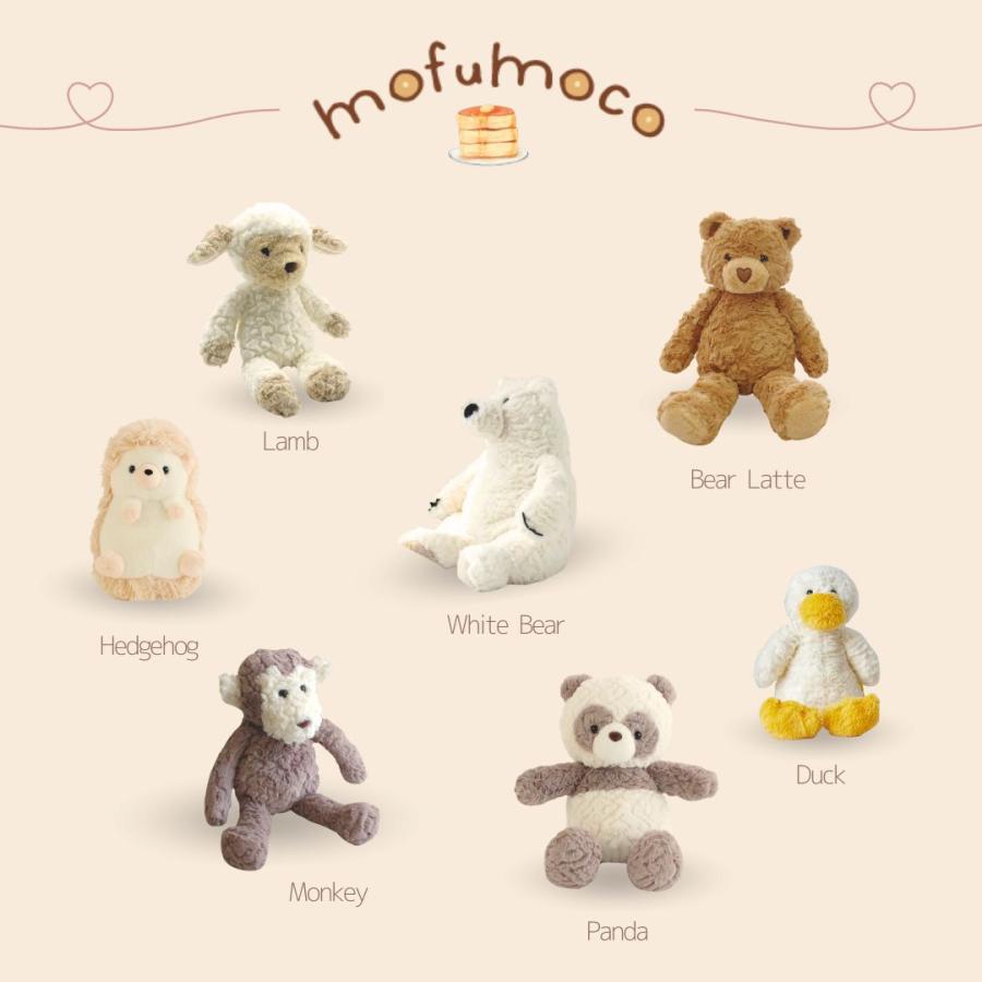 もふもふでもこもこ、安心のはじめてのおともだち。おもわずぎゅっと抱きしめたくなるぬいぐるみ、ふわふわでもふもふ・もこもこな動物たち、その名はmofumoco。