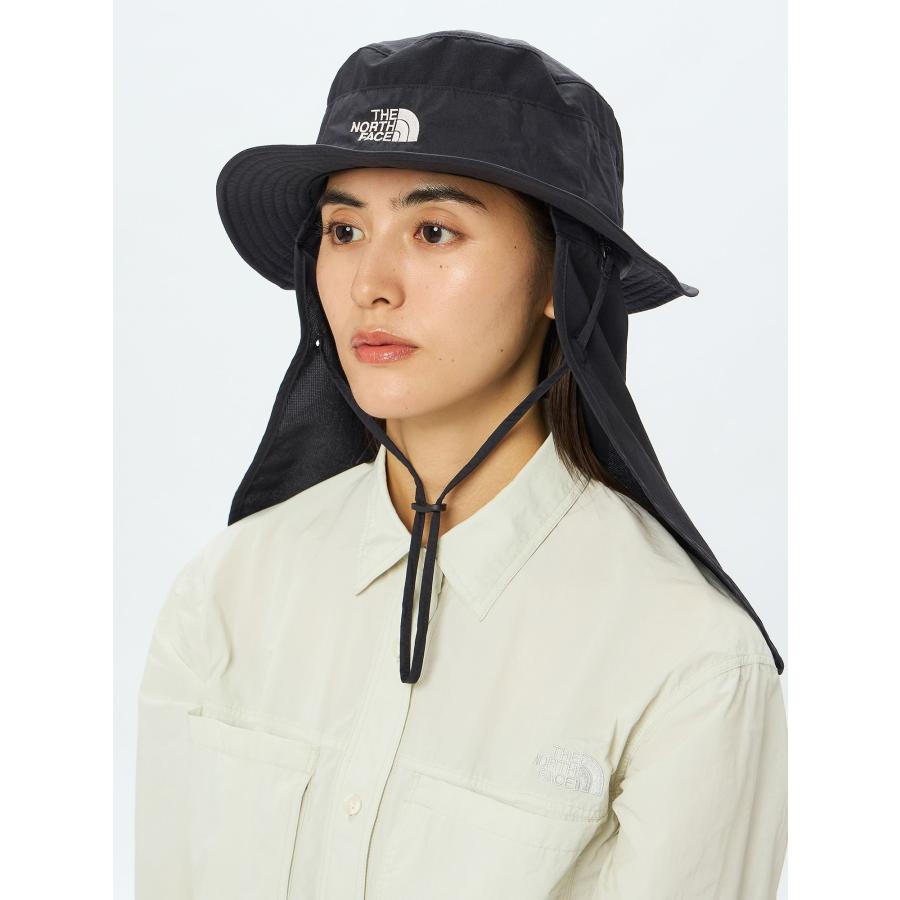 スナップボタンで簡単に取り外しができるシールド部は、首まわりの日焼け対策に効果的。両サイドにバイザー止めのスナップボタン付きで、あご紐は取り外し式。後部のアジャスターコードにより頭まわりのフィット感の調節が可能です。UVケア(UPF15-30、紫外線カット率85%以上)機能付きで、日差しが強い春の残雪期から秋まで幅広いシーズンに活用できます。