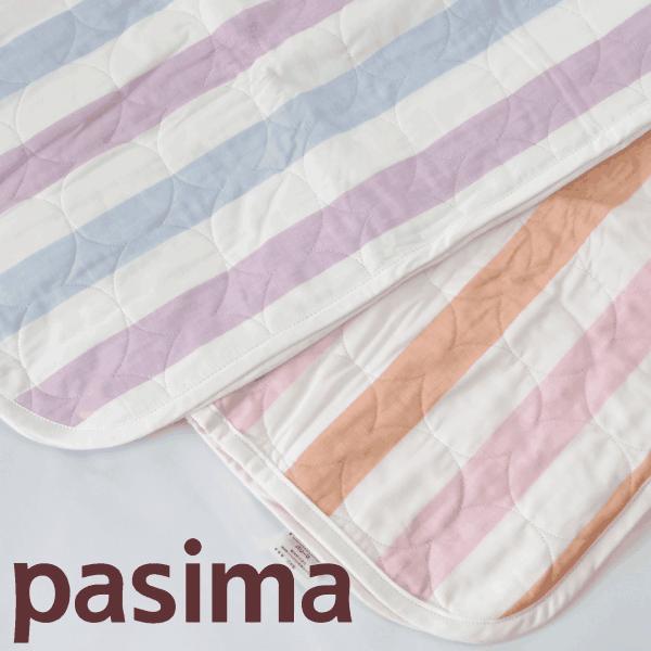 朝までぐっすり。医療用純度の脱脂綿とガーゼの空気層が、理想とされる布団の中の温度33度と湿度50%を保ちます。ムレずに快適なあたたかさが安眠へと導くのです。使うほどふっくら。ザブザブ洗えるパシーマは洗濯するほど独特の風合いを増し、ソフトな肌ざわりに。有害物質を含まず、ホコリも出にくい乳幼児も安心の素材です。赤ちゃんがなめても安心。パシーマには蛍光増白剤や抗菌剤、防カビ剤などは一切使用していません。繊維製品の国際安全基準「エコテックス規格100」の最も厳しいクラスIの認定を日本で初めて取得した寝具です。