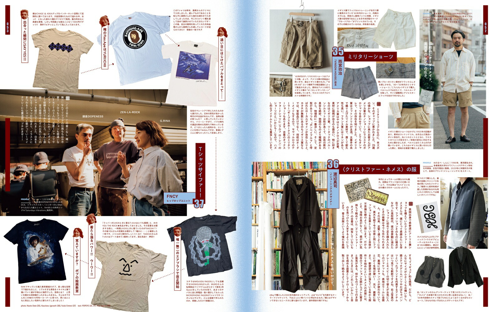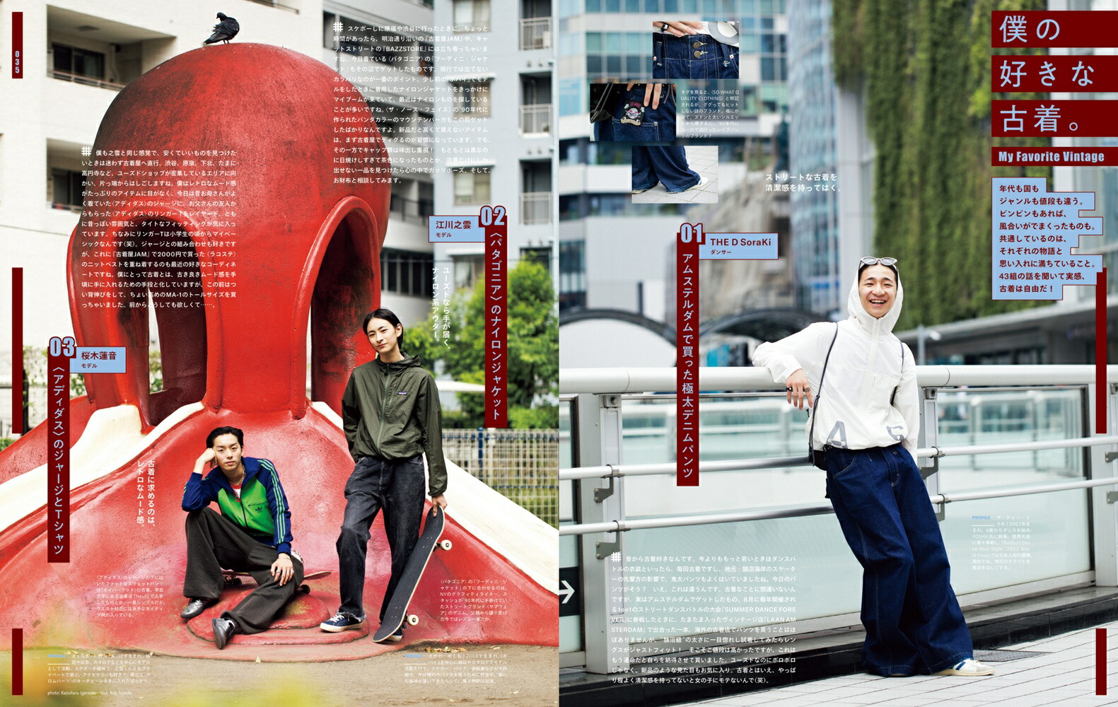 松陰神社の街で、ママチャリを押して歩くお母さんが工事中の店舗を見て「また、ここも古着屋さんができるのかなぁ」なんて話している。「ザ・ノンフィクション」では下北沢の古着店に密着し、YouTubeを開けば芸能人が博物館級のヴィンテージデニムを買っている。それくらい今、街は古着の熱狂の中にある。そんな流行り切った様子を見て「古着は終わった」なんて言う人もいるけど、逆に言えば今は玉石混交あらゆる古着が溢れていて、そこから自分だけの価値を見つけ出して追求できる楽しさがある。年代が古いから、レアなものだから、高い金額がついているから。それがすべてじゃなくって、信じるべきはとにかくその古着が“好き”って熱量だ!■Just regulars…or so you think?僕らの好きなレギュラー古着をどう着るか。■僕の好きな古着。My Favorite Vintage誰にでも思わず話したくなってしまう古着がある。43組に聞いた、好きな古着のこと。■ヴィンテージへの扉を開く。Knockin’ on Vintage’s Door■せっかく買うなら、こんな店で。Vintage Shop GuideSPECIALITY STORE / FACING THE UNKNOWN /HARAJUKU / SKATER FEEL / THAT CORNER /OWNER’S OBSESSION / SLACKS / MACHIDA /GOOD REGULARS / UNIQUE REGULARS /SHIMOKITAZAWA / DIG■<TET ’S PICK>VINTAGEWHOLESALE WAREHOUSEWITH TETSU NISHIYAMA西山徹さんと古着卸売り倉庫へ。■20代の僕が古着屋さんを始めた理由。The reason I runa vintage clothings sotre.4人の店主に聞いた、店を始めるまでとそれから。■ワールド古着フォーラムWorld Vintage Forum■古着特集後夜祭。Editor’s Voice■4人のパイオニアに聞いた日本の古着文化、始まりの話。The Dawn of Japanese VintageClothing Culture by Four Pioneers.