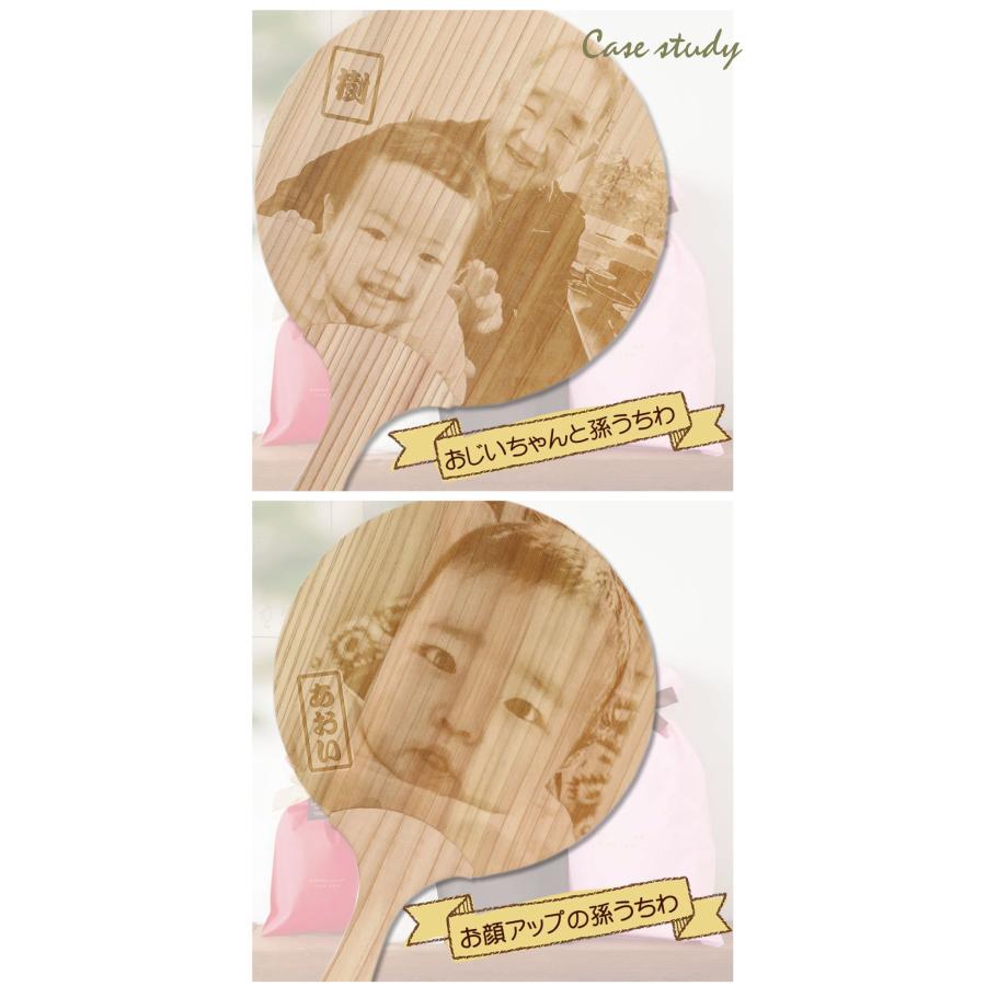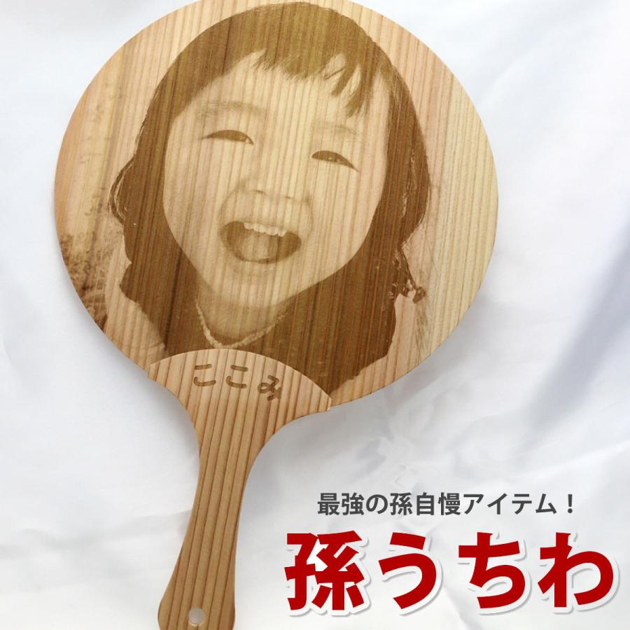 天然杉のうちわにレーザー加工で写真&名入れを施した、世界で一つだけのうちわです。扇ぐたびに優しい木の香りが素敵です。