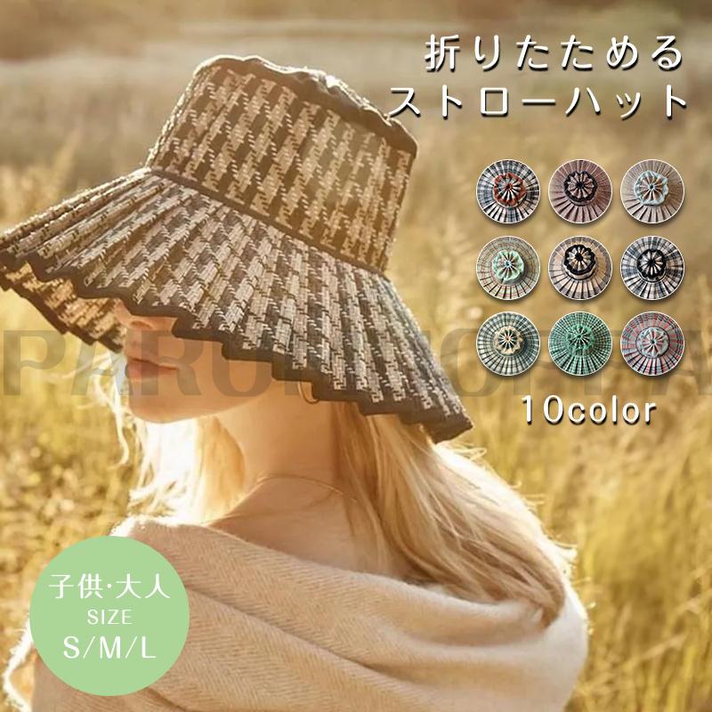【 折りたためるストローハット 】帽子 レディース キッズ 春 ハット 麦わら帽子 つば広 UVカット 海 紫外線対策 日焼け止め 帽子 折りたたみ ストローハット