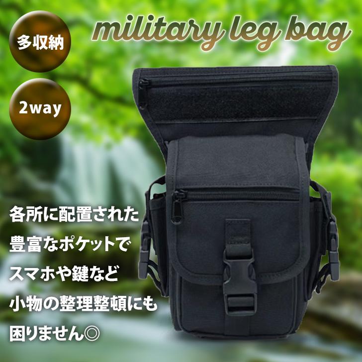 足に固定できる。多収納ミリタリーレッグバッグ