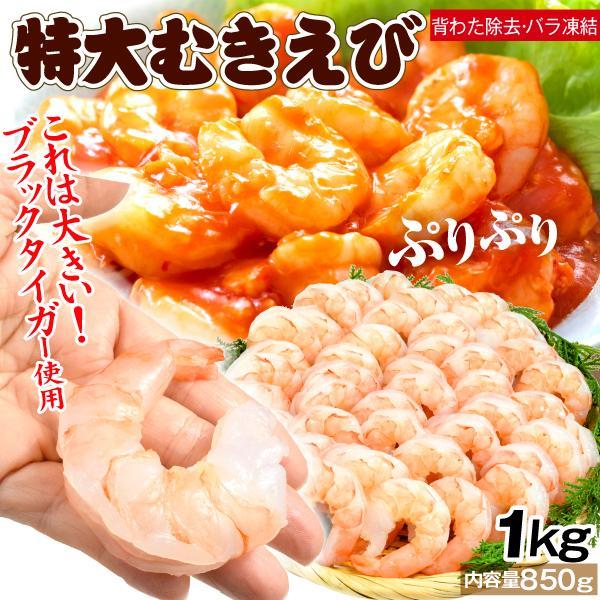 味が濃くプリプリ弾力とボリューム満点!食べ応えばっちりの特大ブラックタイガーをむきエビにしました。殻・背ワタまで取り除きバラ凍結しているので、使いたい量だけ使えお料理に大活躍。今回お届けのサイズはとても大きく、エビチリやアヒージョの料理が豪華見えします。