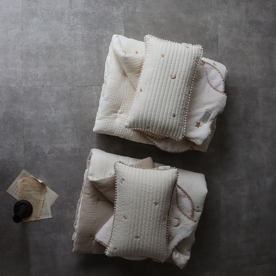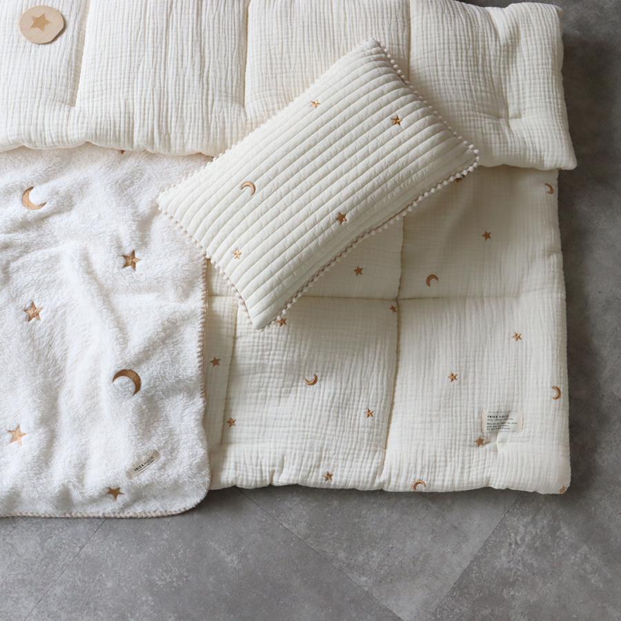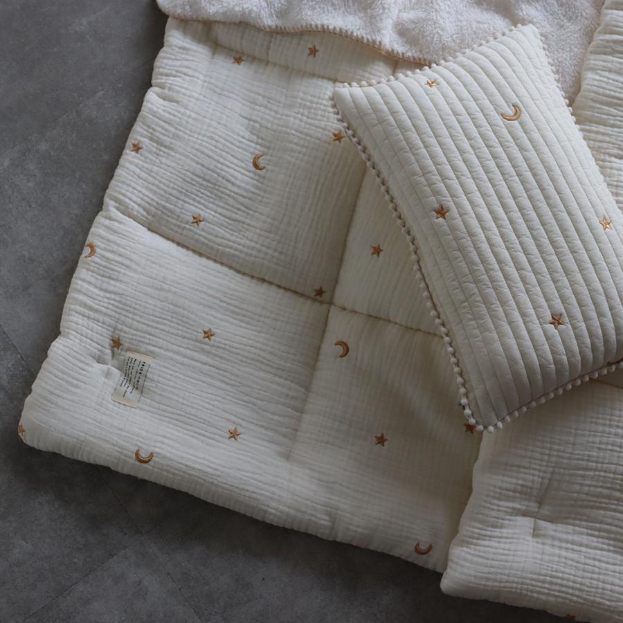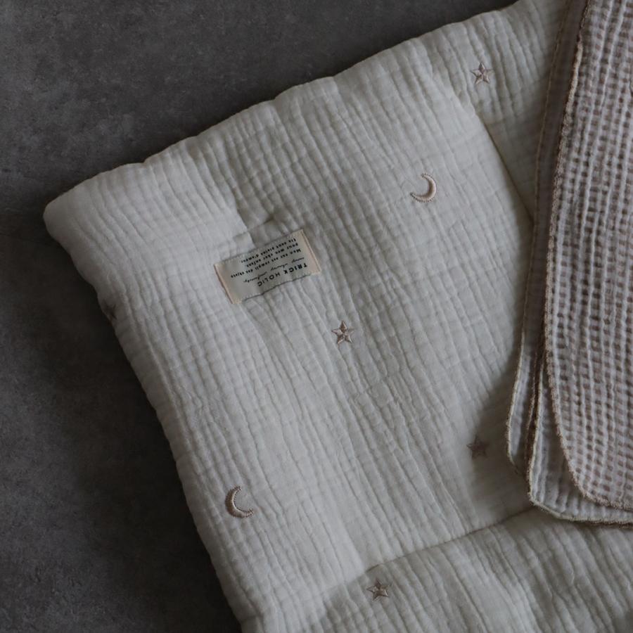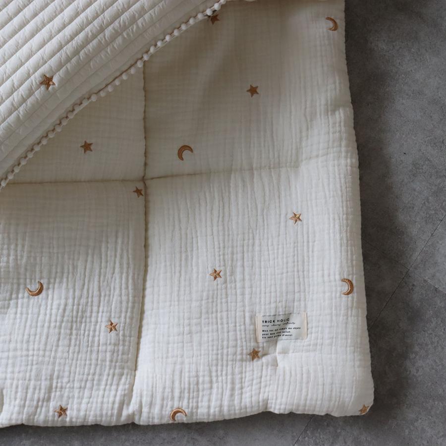 星と月の刺繍がかわいい、3重ガーゼでふんわり綿を挟んだガーゼコンフォーターです。