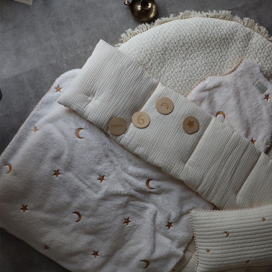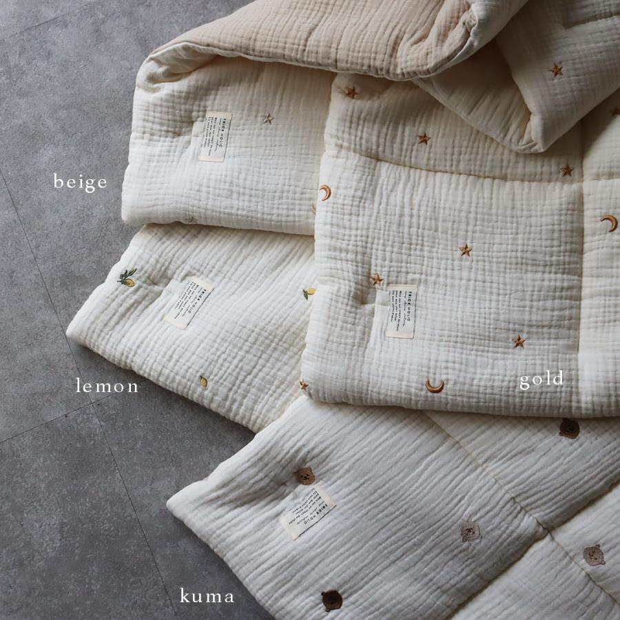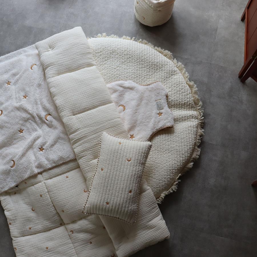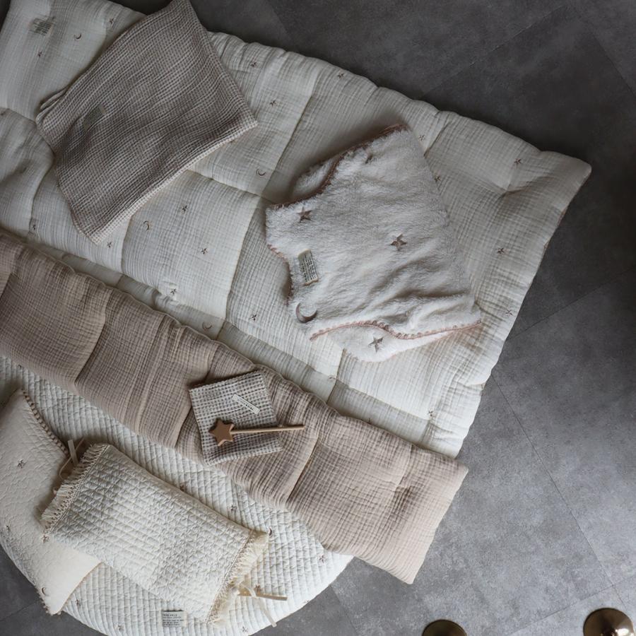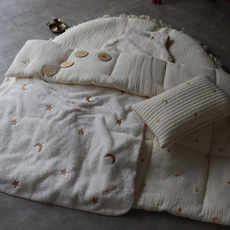 星と月の刺繍がかわいい、3重ガーゼでふんわり綿を挟んだガーゼコンフォーターです。