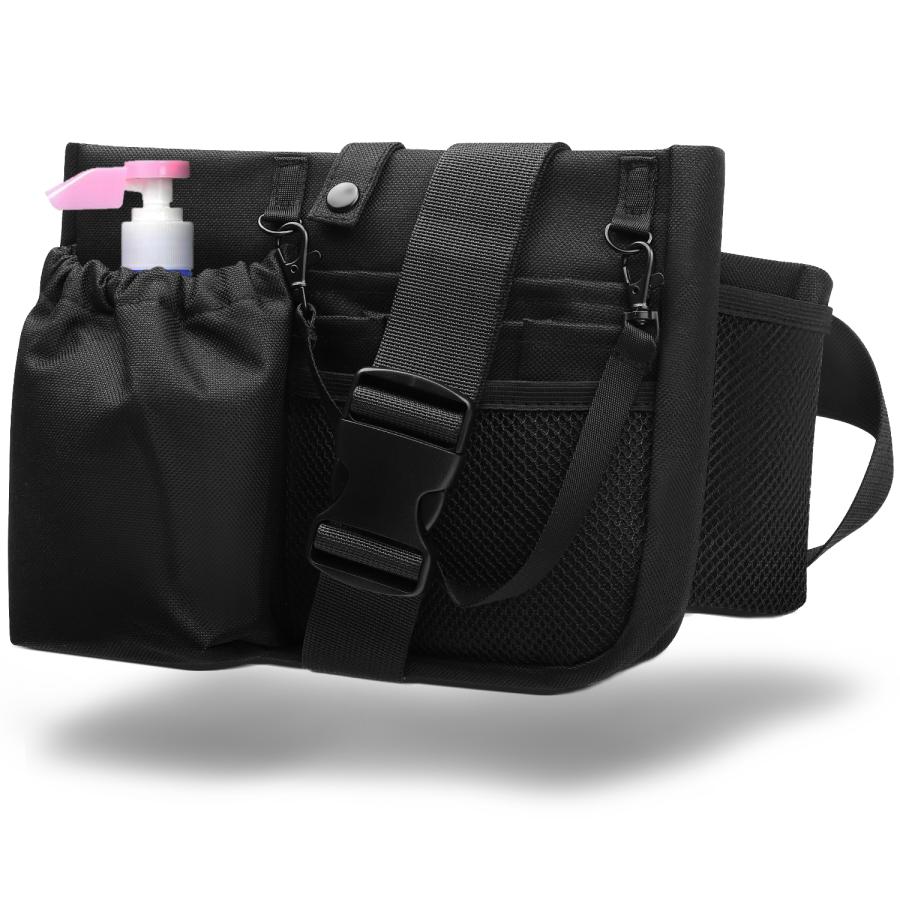 【15の収納力】手指消毒ボトルが収納できる専用のポケット付き。カギやメモ帳、テープ類を整理して収納できる各種ポケットは合計12個。ありとあらゆるものを収納でき、必要な時にはさっと取り出せます。