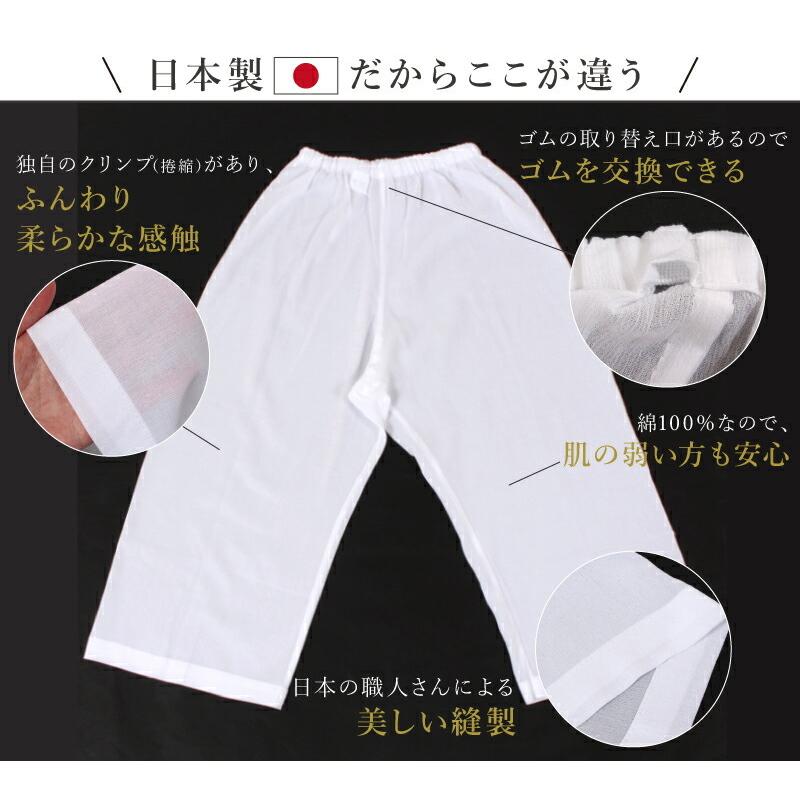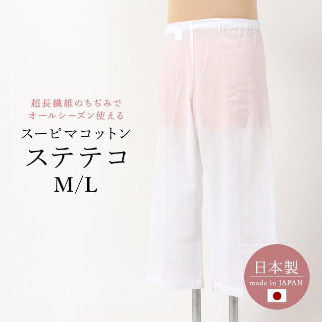 ステテコ レディース 裾除け 和装パンツ 白 スーピマコットン ちぢみ 綿100% 肌に優しい 和装下着 【日本製】