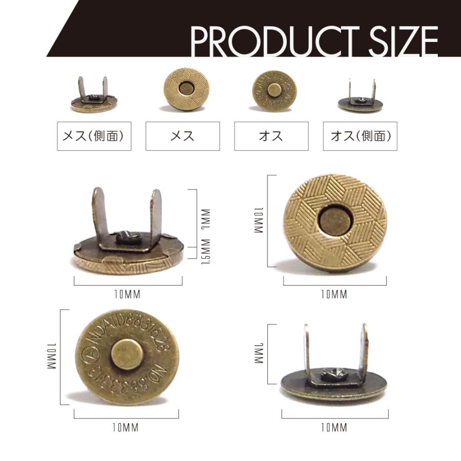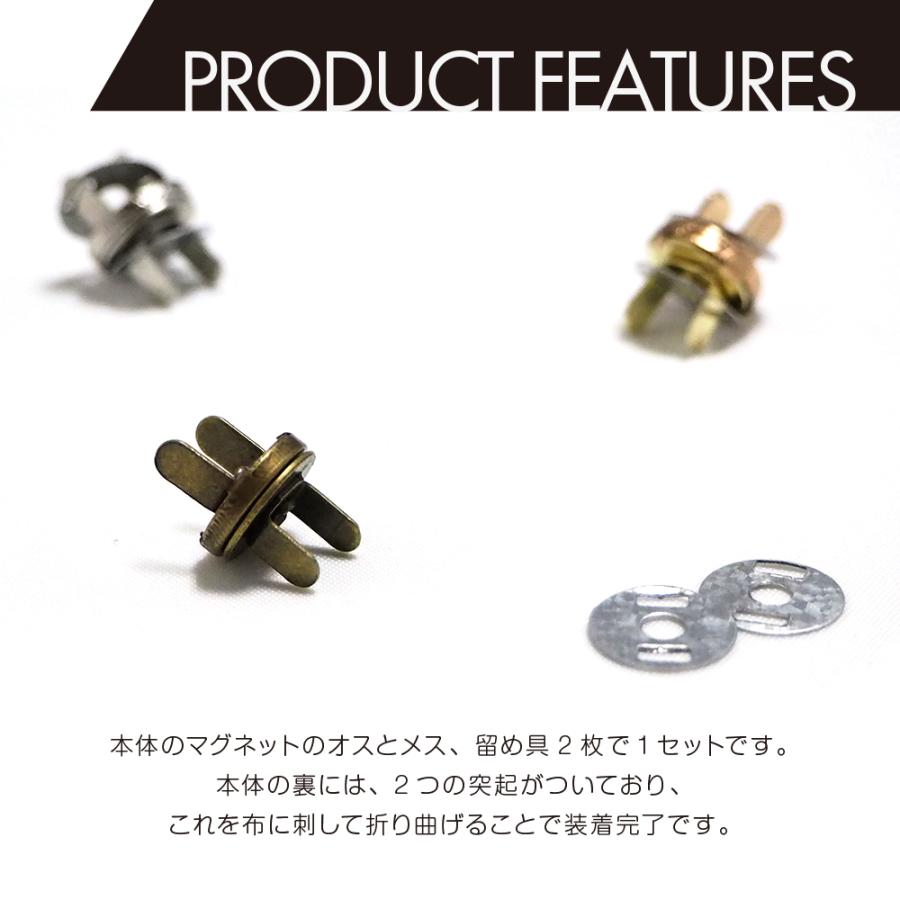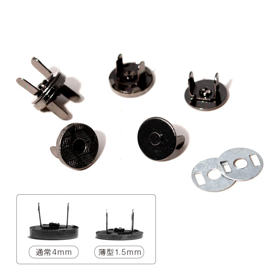 差し込み式の薄型10mmマグネットホック・マグネットボタン30組セットです。縫い付け不要で取り付けが簡単。本体裏の突起を革や生地に差し込み、折り曲げるだけで作業完了。バッグやポーチの口止めに便利なマグネットホックです。針や糸が使えないもの・できれば縫いたくない場合にとても重宝する差し込み式となっております。マグネットは強力で、重い荷物を入れても大きなバックに使用しても安心です。