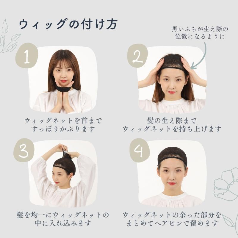 1.付属のウィッグネットを首からかぶって髪を均一にまとめていく。