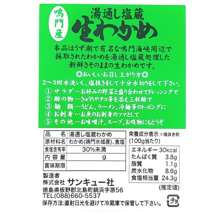 渦潮で有名な鳴門海峡周辺で採取した鳴門わかめを、湯通しして塩蔵処理した 品質の良い漁師自慢の生わかめです。