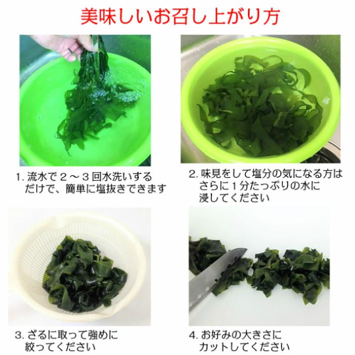 渦潮で有名な鳴門海峡周辺で採取した鳴門わかめを、湯通しして塩蔵処理した 品質の良い漁師自慢の生わかめです。塩分含有率をご存知ですか?本品は 塩蔵わかめとして最低必要な塩分以上に余分な塩は加えていませんので、同じ重量のわかめと比べてみても わかめの重量が多いことがお分かりいただけます。しかも水戻しが簡単です。サラダ、酢の物、お刺身、和え物、麺類の具、みそ汁など 色々とご利用いただけます。