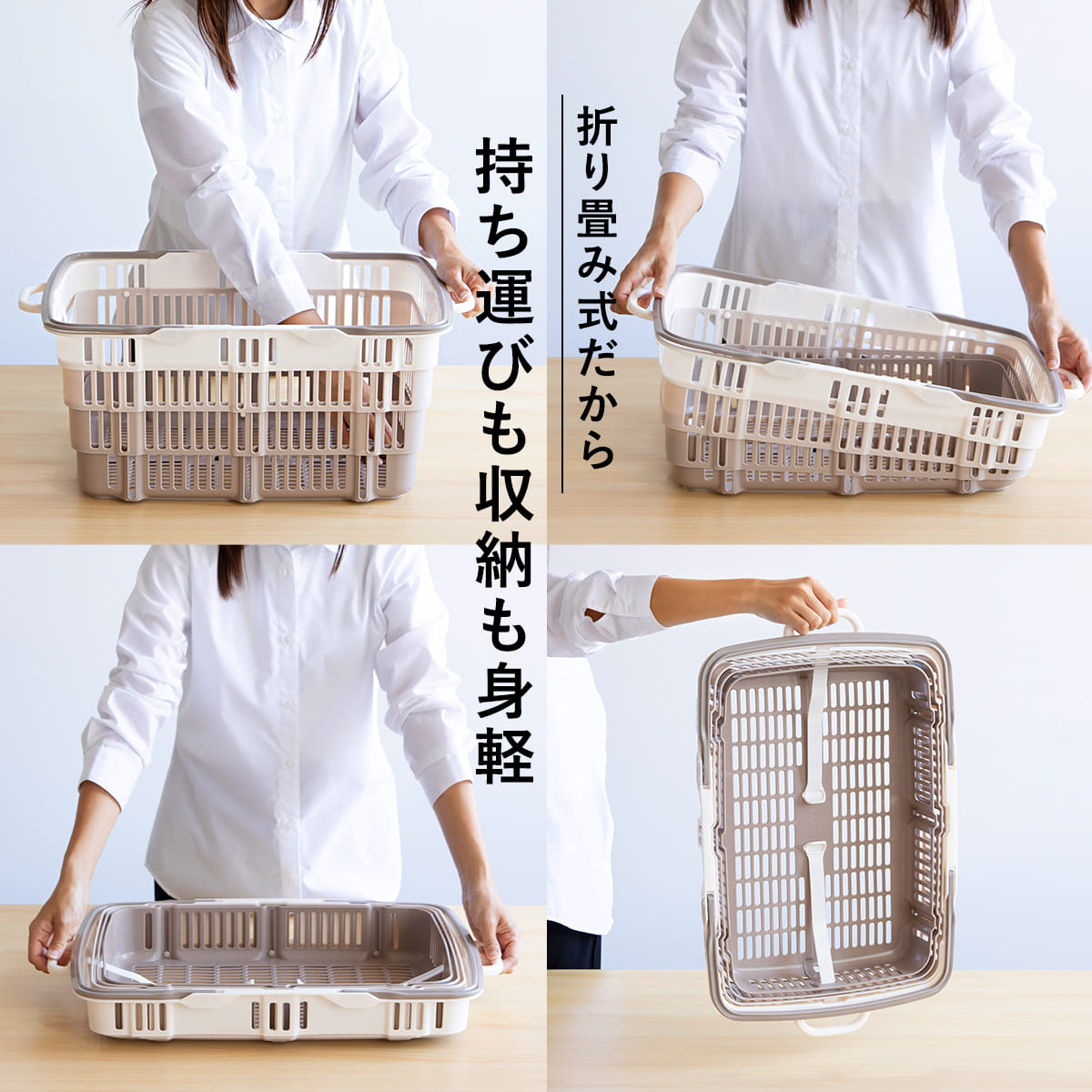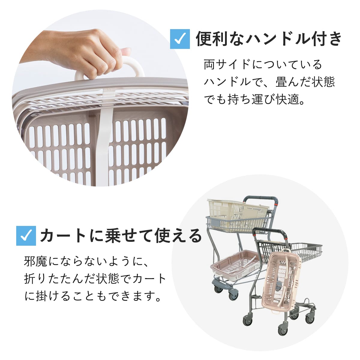 ●移動や収納に便利な折りたためるショッピングバスケットです。