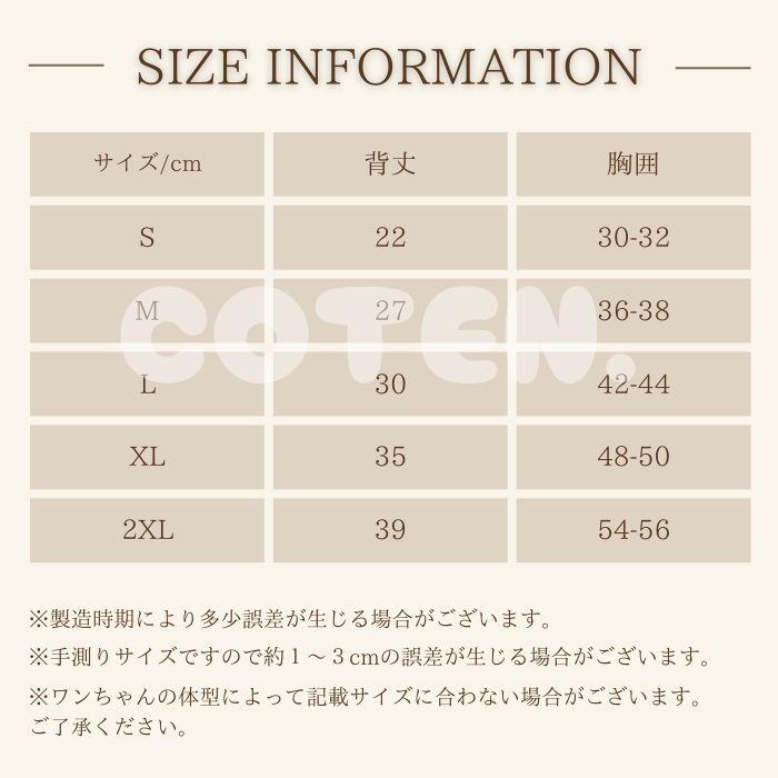 XL:背丈35cm、胸囲48-50cm