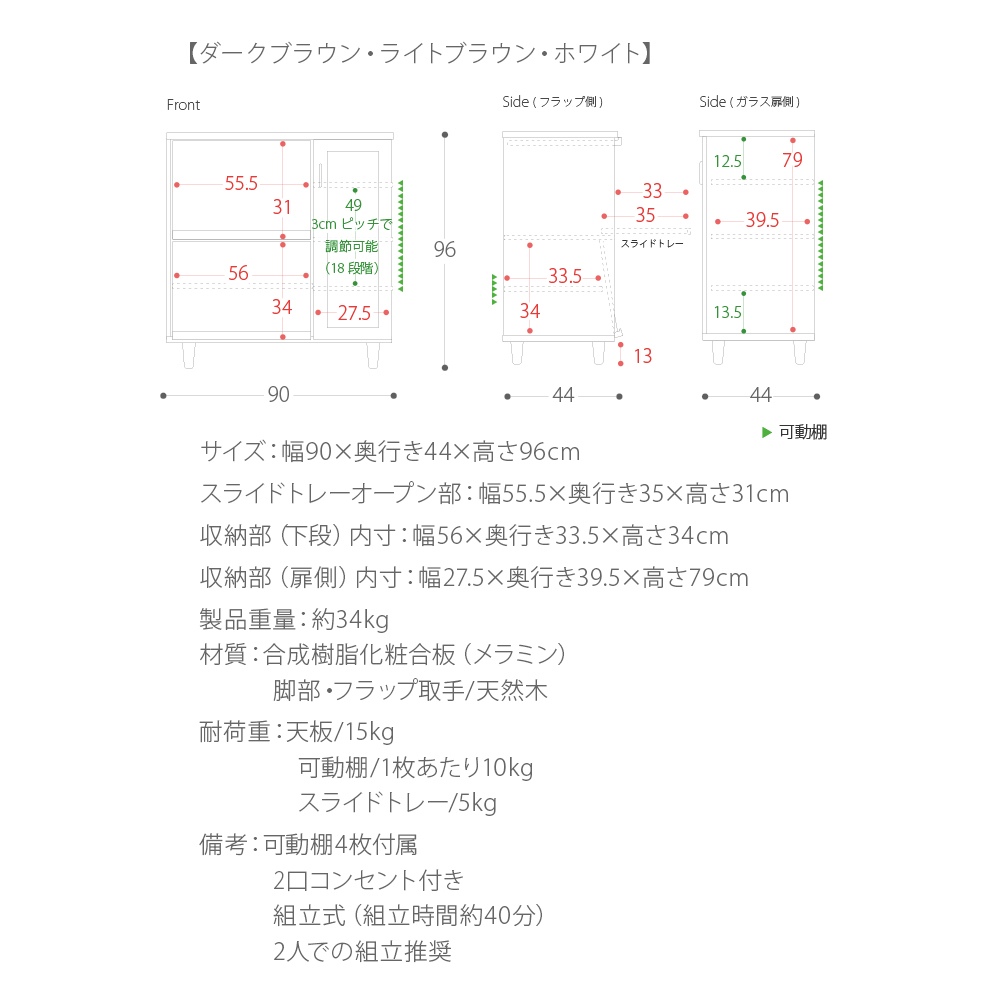 天板/15kg、可動棚/1枚あたり10kg、スライドトレー/5kg