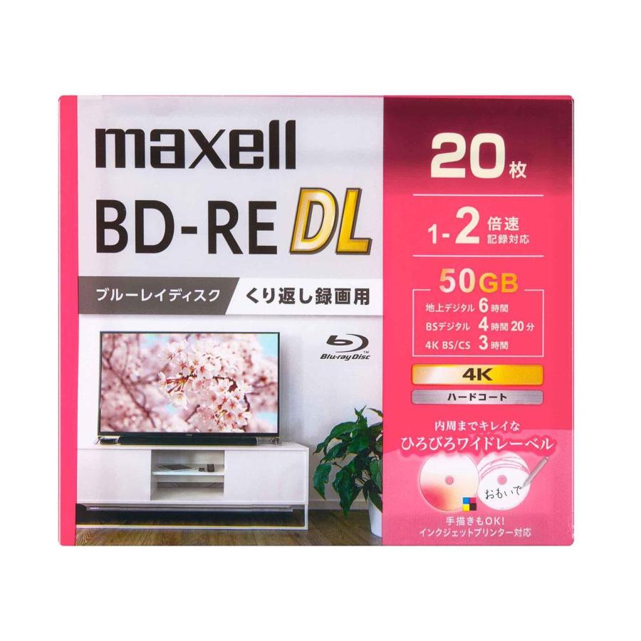 【在庫あり】ブルーレイディスク くり返し録画用 20枚 BD-RE DL 50GB 2層 1〜2倍速対応 4K対応 ひろびろワイドレーベルディスク BEV50WPG.20S maxell マクセル