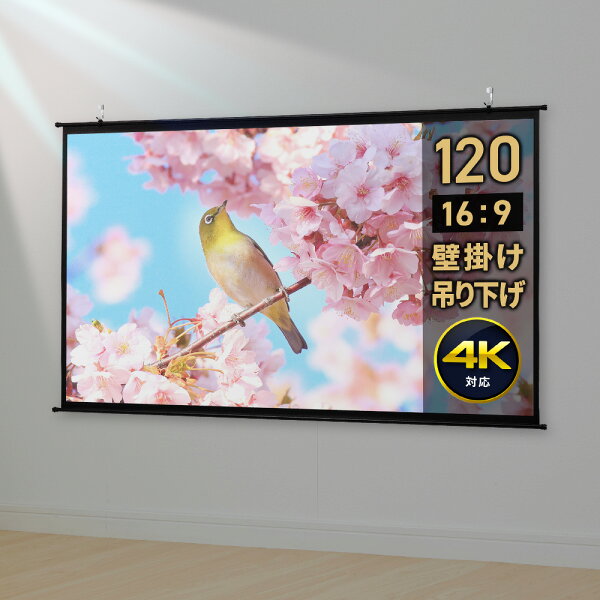 【最大500円オフクーポン発行中】プロジェクタースクリーン 120インチ ワイド 16:9 壁掛け ロール 吊り下げ フック 高画質 4K フルHD 大型 ロール 軽量 会議 学校 オフィス 会社 家庭 ホームシアター 簡単設置 掛け軸 おすすめ EEX-PSK3-120HDK