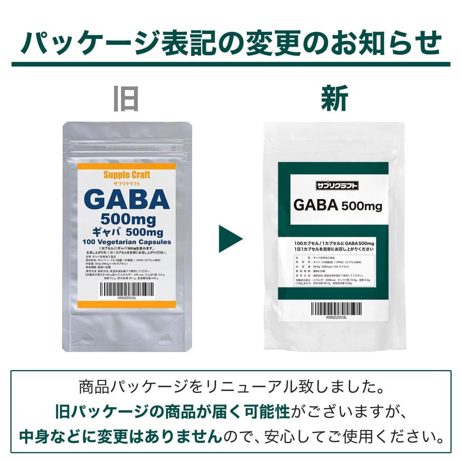 【ギャバだけのカプセル】1カプセルにGABA(ギャバ)だけを500mgを配合したサプリメントです。100カプセル入り。