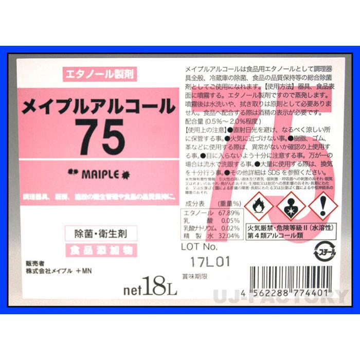 品名:メイプルアルコール75 18L缶 (コック無)