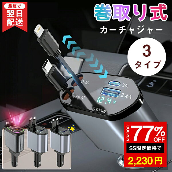 Array ( ) 【ダハナビ】★SS激安→2230円★【3タイプ選べる】【1年保証】シガーソケット 充電器 巻き取り リール式 車 USB Type-C★Lightning…の最安値を発見。フリマ、オークション、有名サイトとも価格比較できます。