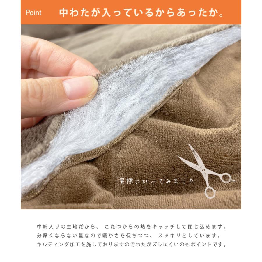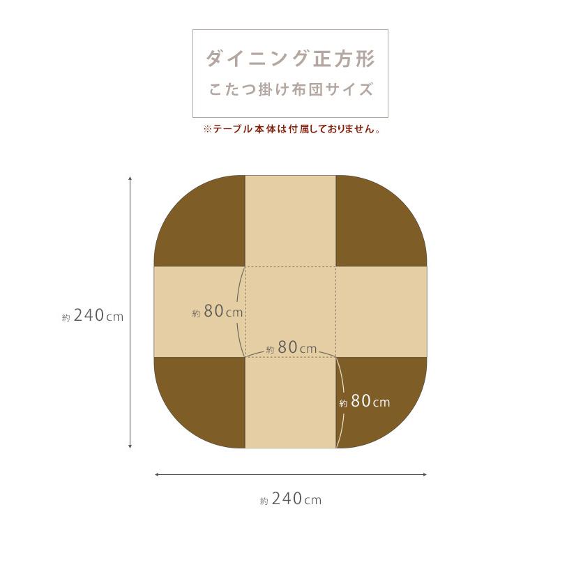 約(縦)75〜80×(横)75〜80cm(高さ)65〜70cmのこたつ本体サイズに適しています。