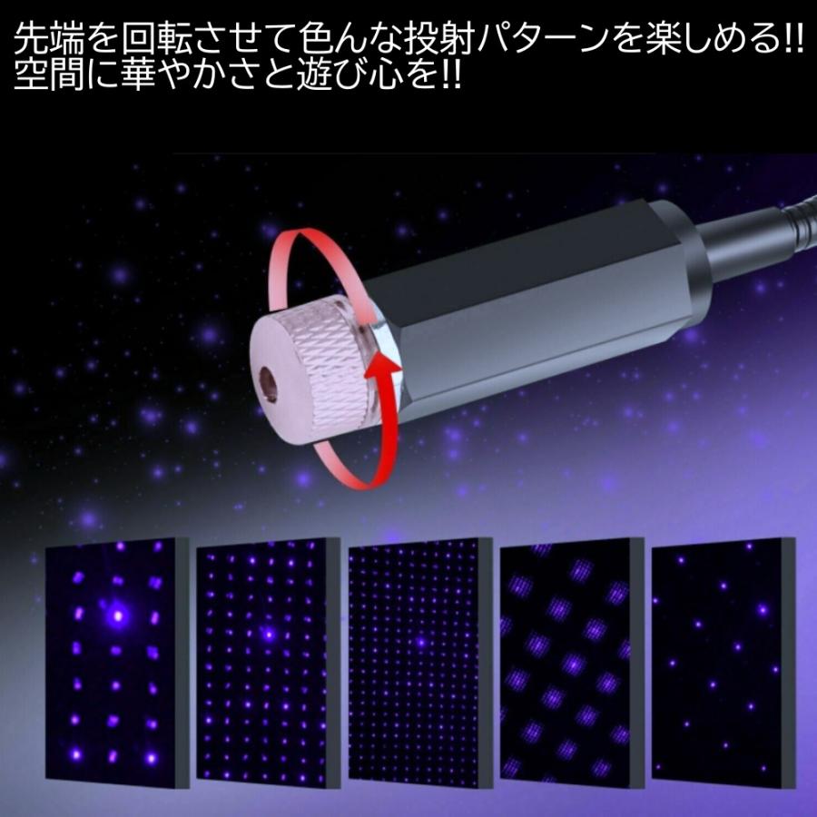 ■商品概要・空間を高級でラグジュアリーに大変身させます!!・本体の先端を回転させて照射パターンを調整できます!!・車以外にも寝室やリビング等のお部屋やパソコン等でもご使用可能です!!・USBポートに差込むだけで使用いただけますので簡単です!!・綺麗な発光で、星空や天の川を連想させます!!・全国一律送料無料となります!!■商品仕様【個数】:2個入【カラー】:パープルブルー【サイズ】:約21cm×1.5cm【電 源】:USB給電