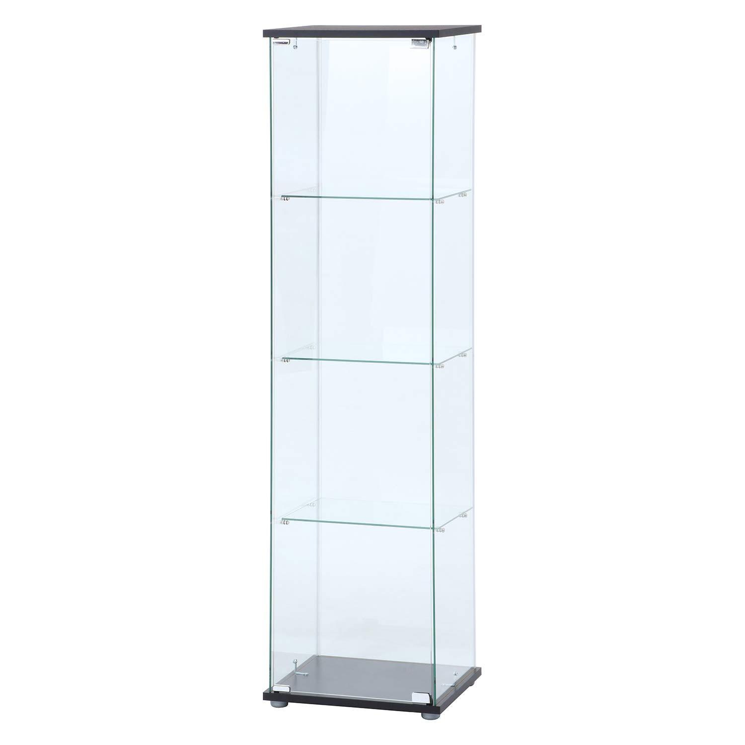 ガラスコレクションケース フィギュアケース 4段 クリア 4面ガラス 幅42.5cm 奥行36.5cm 高さ162cm ブラック 強化ガラス(代引不可)【送料無料】