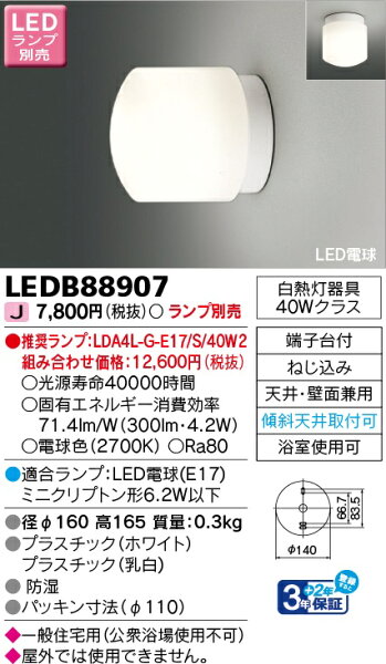 東芝 LEDB88907 LED浴室灯(ランプ別売)