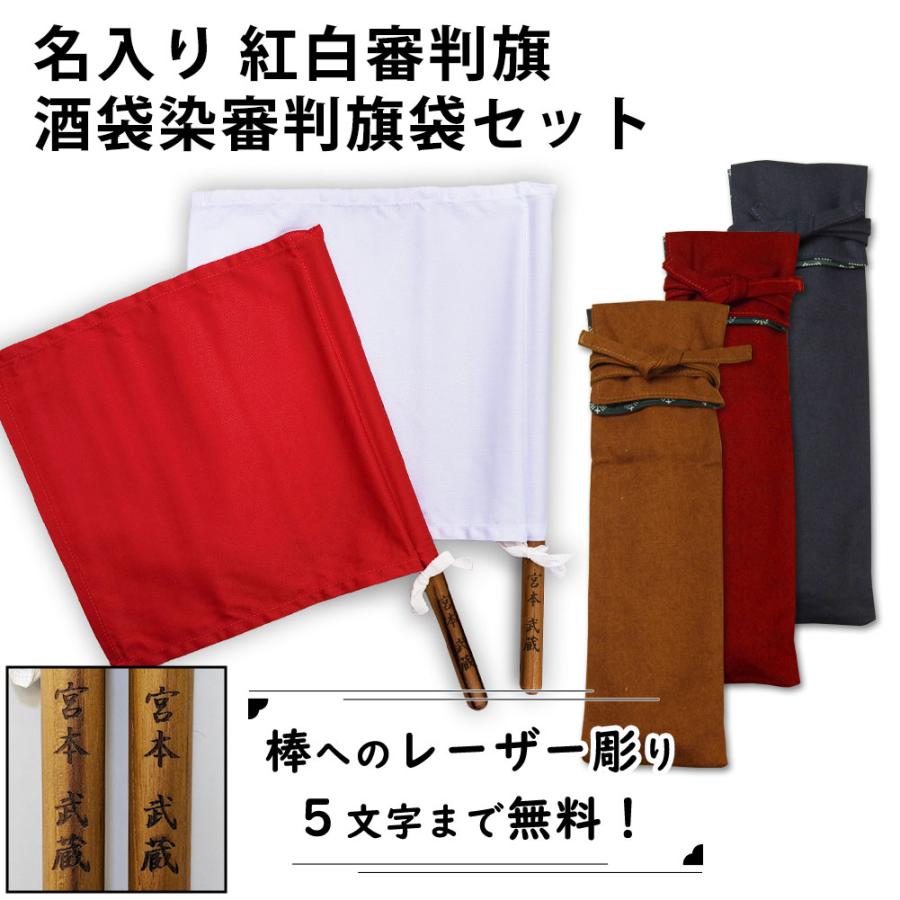 剣道の試合で、審判が使用する審判旗(紅白2本1組)と袋のセットです。