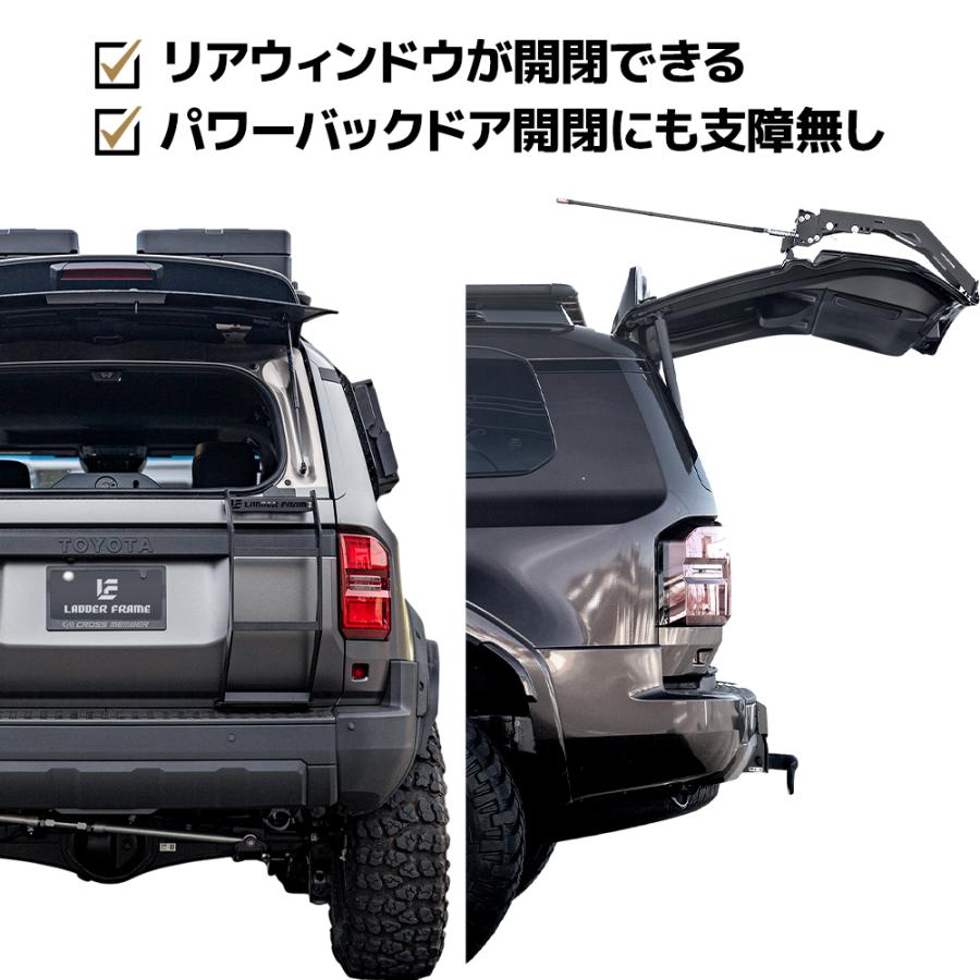 唯一のリアガラスの開閉が出来る専用設計のハーフリアラダーです。ステップの幅は昇り降りしやすい25cm。アメリカのクラフトマンが手作りで溶接しているハンドメイド品です。