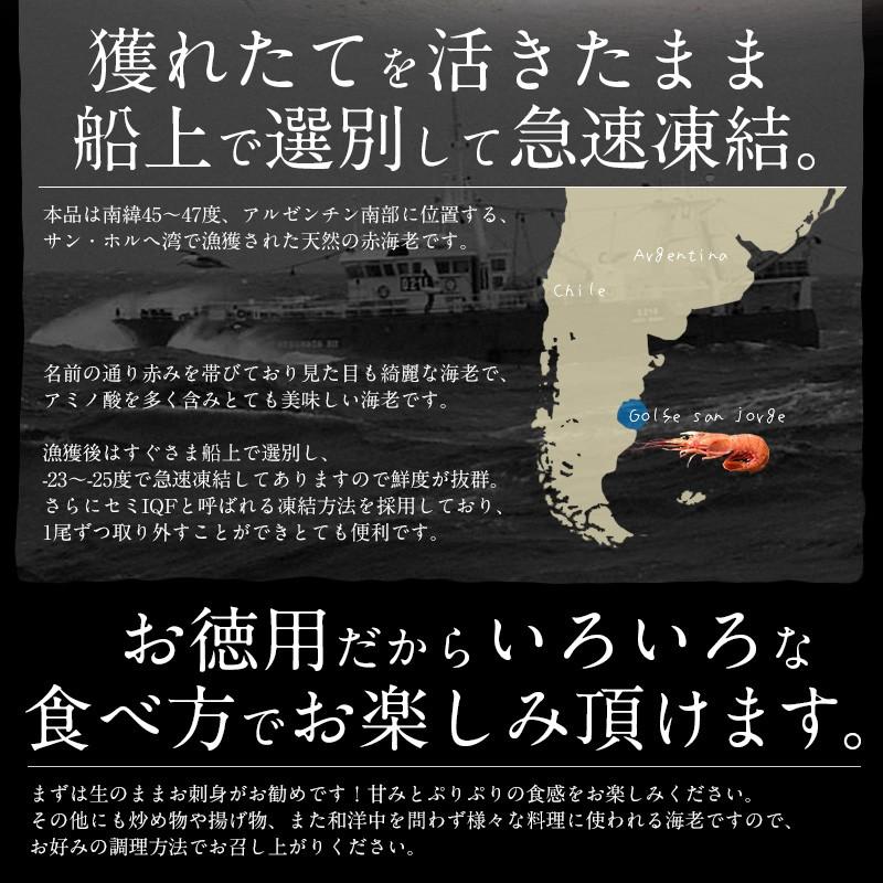 赤海老 赤えび 船上凍結で鮮度抜群のお得用アルゼンチン赤エビ【内容量】2kg(約40〜60尾入り)【原材料】アルゼンチン赤えび【お召し上がり方】流水で急速解凍しお召し上がりください【賞味期限】約30日(要冷凍-18℃以下)【配送方法】冷凍便【送料】無料(北海道・沖縄へのお届けの場合550円頂戴致します)