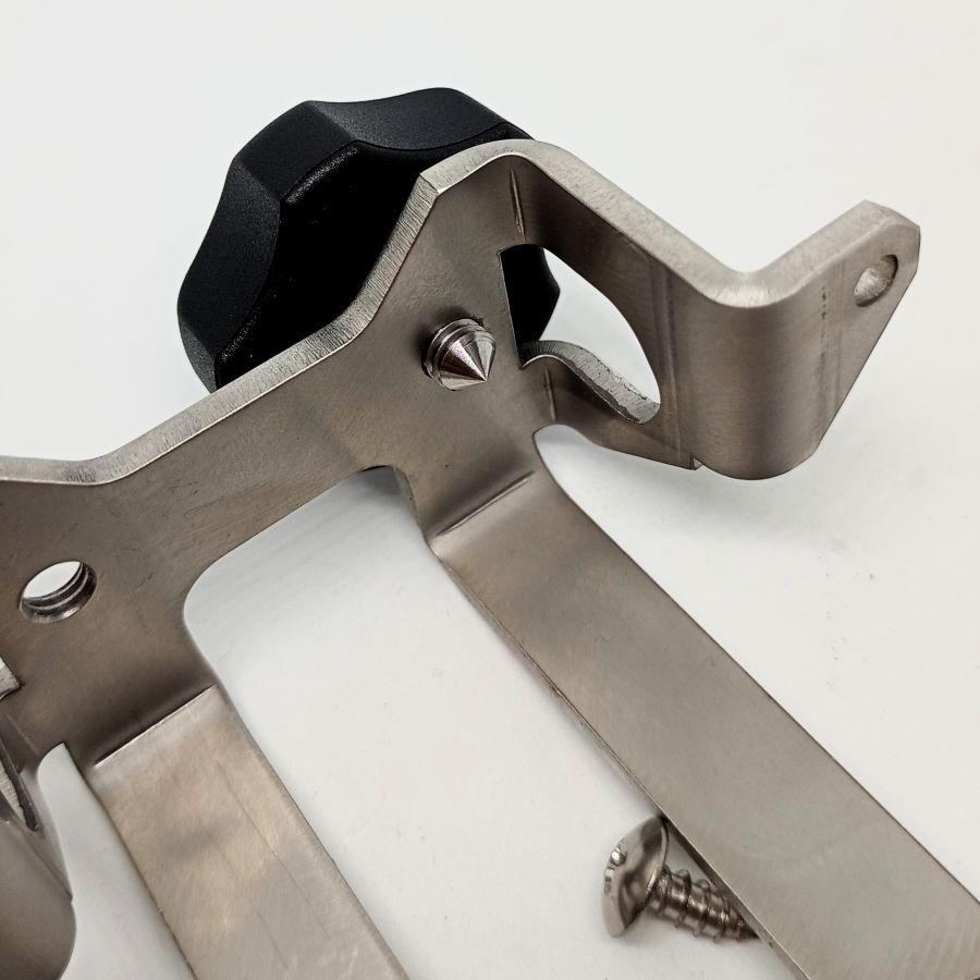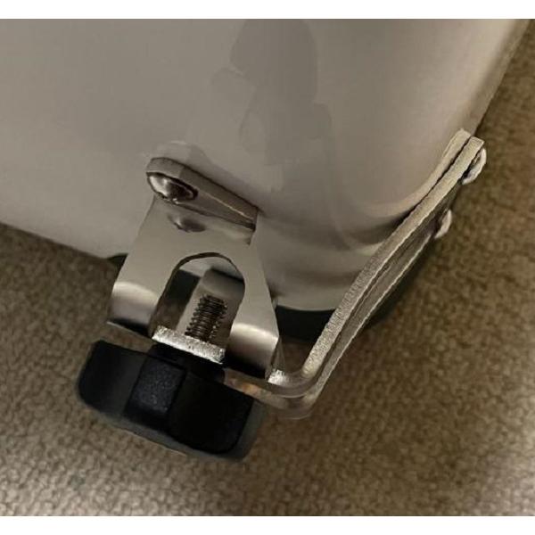 クーラーボックス等にピトンを固定するステンレス製で軽量かつ小型な部品、