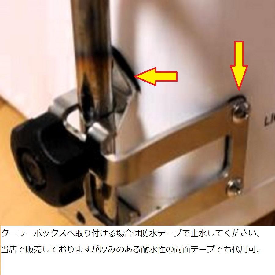 ねじ止めでクーラーボックス等の角を利用して取り付けるのでかなりの強度があります。