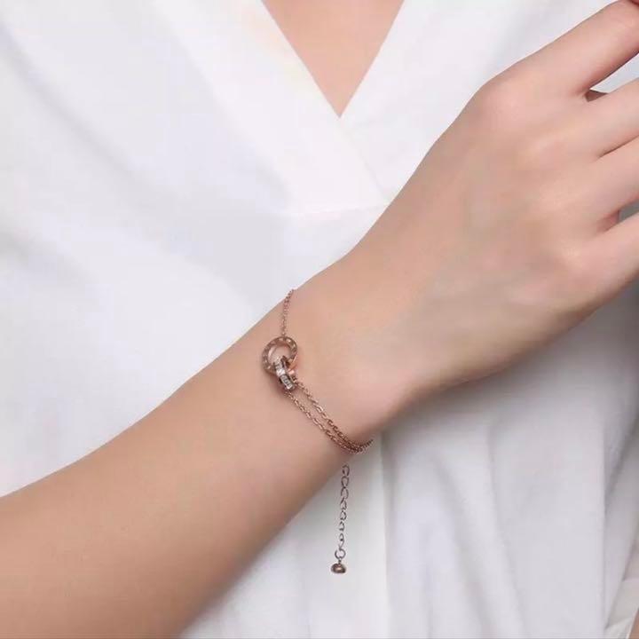 女性らしい華奢な雰囲気でありつつ、ローマ数字ツーリング&ラインストーンのダブルリングが高級感溢れるアイテム。