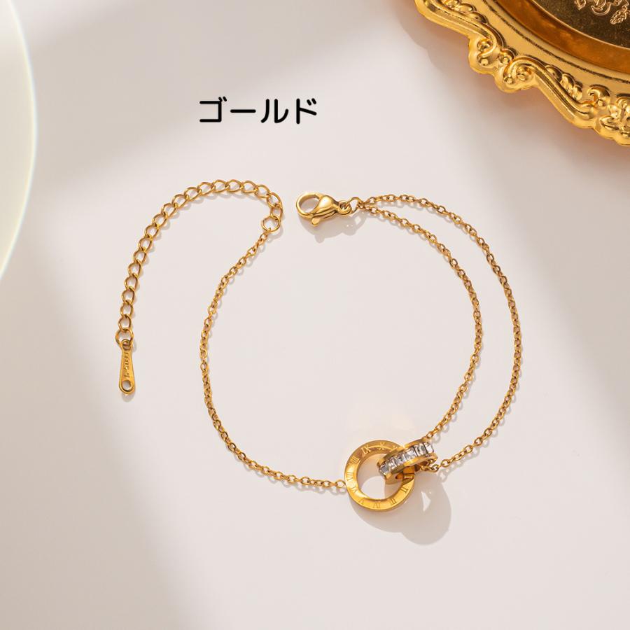 商品名:ダブルリング アンクレット ブレスレット サージカルステンレス ゴールド シルバー レディース