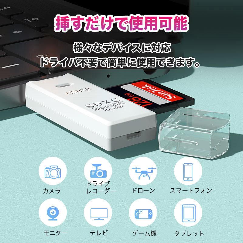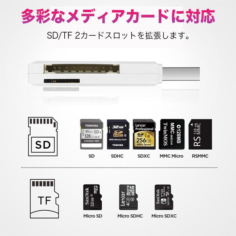 余計の機能を削り、コンピューターのUSBポートに直接接続し、純粋にSDカード/マイクロSDカードからデータの読み書きを行う機能を提供します。(※SDカードとmicroSDカードを同時に使用できません。)