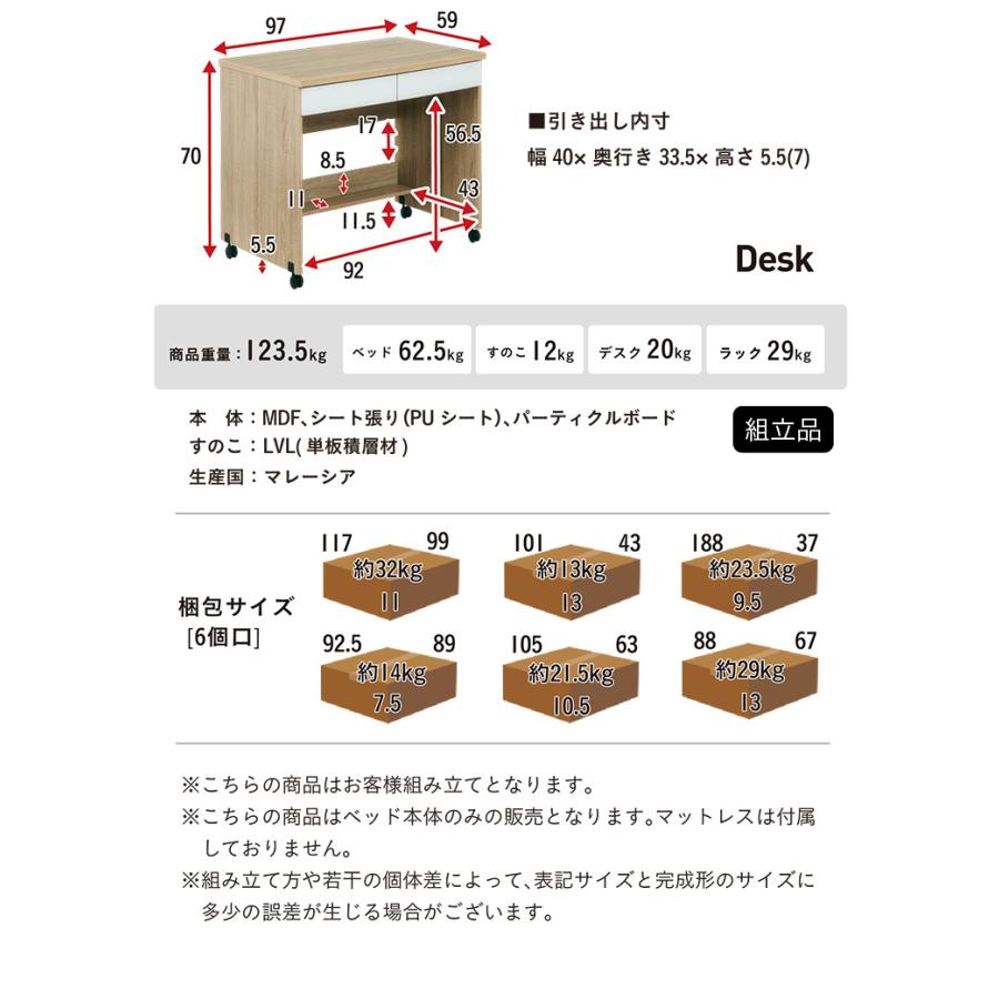 デスク:W97 x D59 x H70cm(キャスター含む)