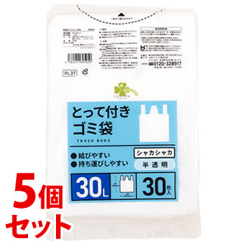 《セット販売》 くらしリズム とって付き ゴミ袋 30L (30枚)×5個セット PL3T 半透明