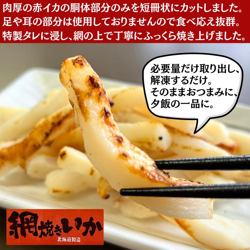 ◎解凍してそのまま食卓へ!おつまみにも夕飯の一品にもどうぞ!◎肉厚の赤いかの胴体部分のみを短冊状にカット。足や耳の部分は使用しておりませんので食べ応え十分です!◎特製タレに浸し、網の上でふっくらと香ばしく焼き上げました!◎1kgの大容量!冷凍庫に常備して、お好きな時にお召上がり下さい!◎お好みでマヨネーズをつけても、炒め物や焼きそばに入れてアレンジも!ピリ辛好きさんには、七味唐辛子入りのピリ辛網焼きいかもご用意しておりますので、お好きな方をお選びください!