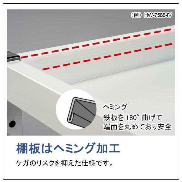 ●棚板はヘミング加工(180°曲げ)しており、ケガのリスクを抑えた仕様です。