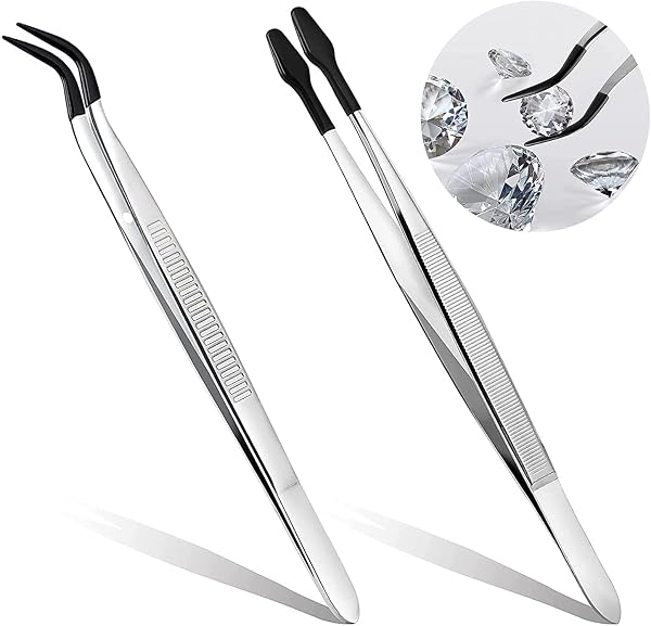 ピンセット 精密 ステンレスピンセット 静電気防止 ネイル 眉 時計用 ビーズ ペーパークラフト用 切手用 イヤリングなどの球体や、コイン宝石などの異形物の保持 150mm ステンレス製ピンセット2本セット