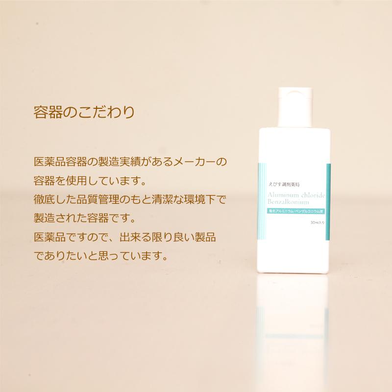 この医薬品は皮膚科でしばしば貰える20%塩化アルミニウム水溶液と同じ濃度です。
