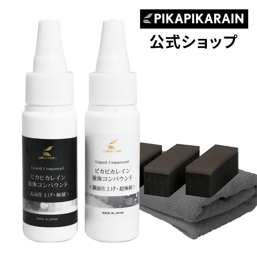 ピカピカレイン液体コンパウンド・極細50ml・超極細50ml・ナノピカピカクロス2枚・スポンジ3個ガラスコーティング剤 ガラスコーティング 下地処理 研磨 洗車 水あか イオンデポジット 除去 爆買
