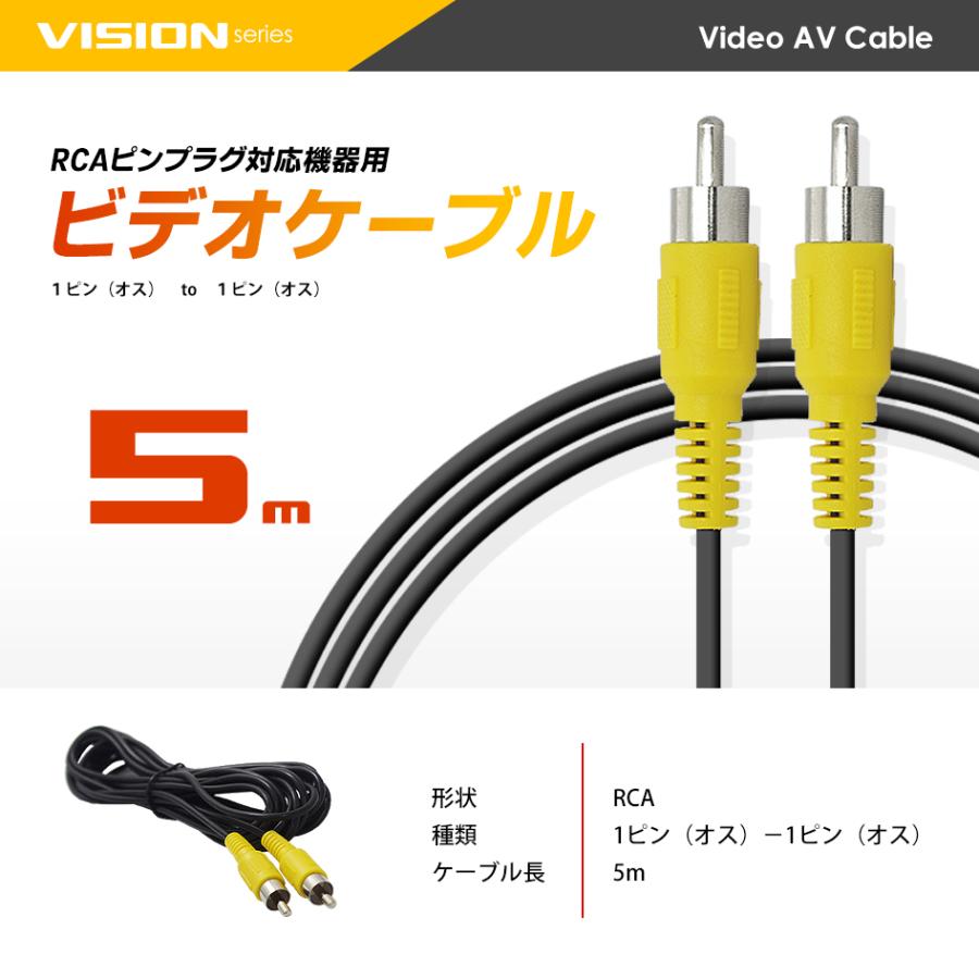 ビデオケーブル 5m 黄/1ピン AVケーブル RCA to RCA テレビ ビデオ バックカメラ モニター 防犯カメラ 映像 ゲーム RCAケーブル RCAピンプラグ 送料無料