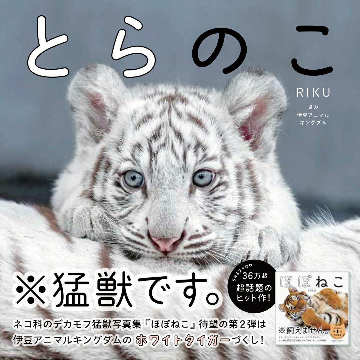 ネコ科のデカモフ猛獣写真集『ほぼねこ』待望の第2弾は伊豆アニマルキングダムのホワイトタイガーづくし!伊豆アニマルキングダムの偉大なる母シロップと、歴代とらのこたち。大人気のツキ&シグレの写真も多数掲載!