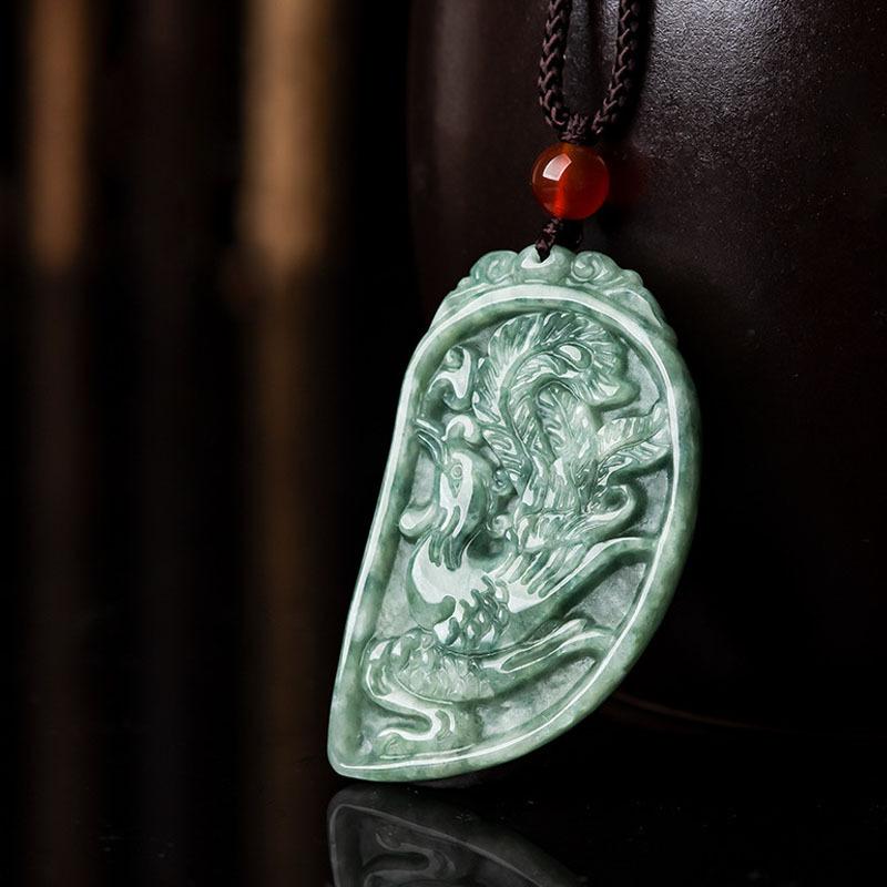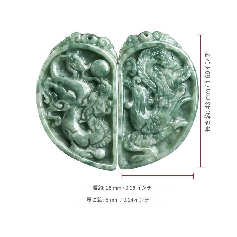 「翡翠調のドラゴンとフェニックスのペンダント」は、古来より縁起の良い象徴とされる龍と鳳凰を組み合わせたデザインで、愛情運や財運を願うカップルに最適なアイテムです。