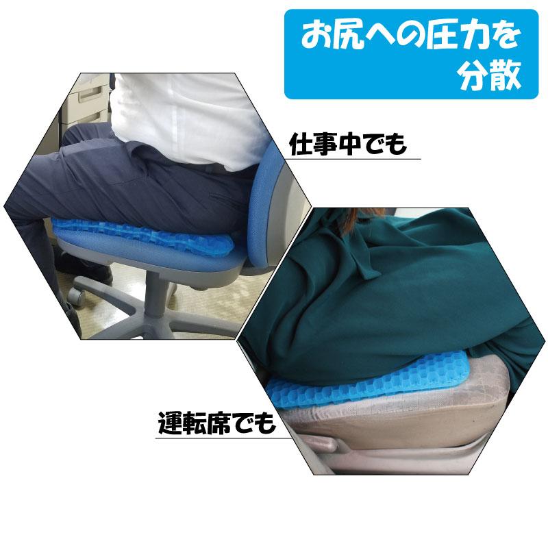 変形しにくい高弾性ゲルを採用。適度な硬さが体圧を均一に吸収・分散して支えます。また長時間座っていてもクッションがつぶれにくく、方らだが沈みすぎることがありません。長期の使用でもへたれることもなく、末永くお使い頂けます。通気性も二重ハニカム構造のゲルは通気性の良い造りになっています。メッシュカバーを付けていてもムレにくく、快適に座ることができます。メッシュカバーも滑り止め加工を施したカバー付き、取り外すことも可能です。いつでも清潔に水洗い可能でご利用いただけます。