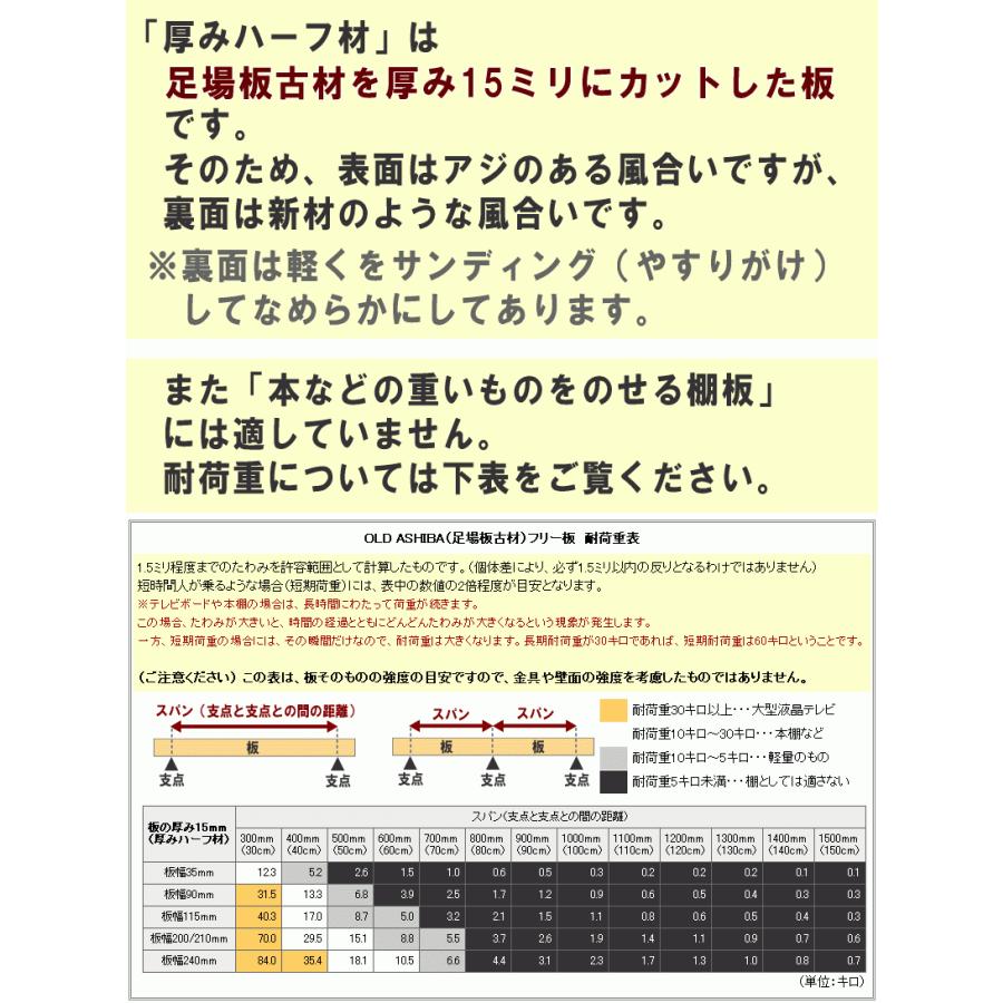 ●足場板古材を幅方向にカットした材料です。カット面は内部の新材部分が露出した面になります。